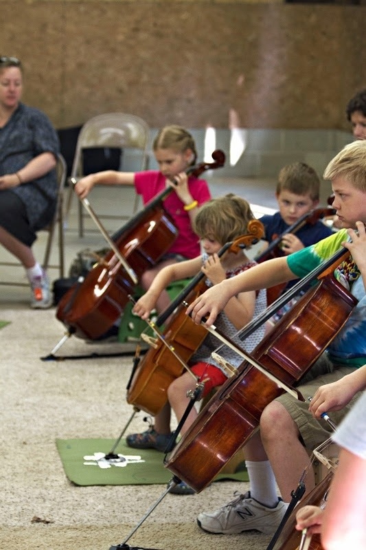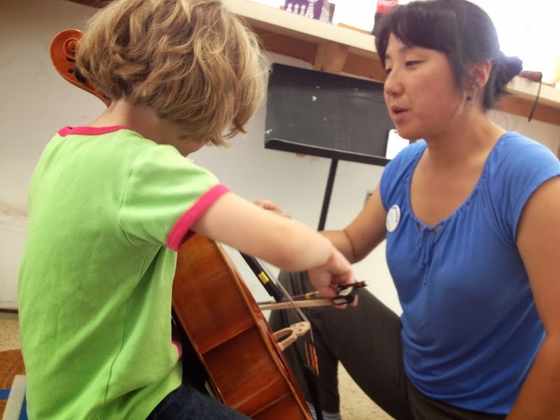 Ms. Andrea worked with the girl on her cello hand so that her fingers each had 2 bumps and were on top of her strings.