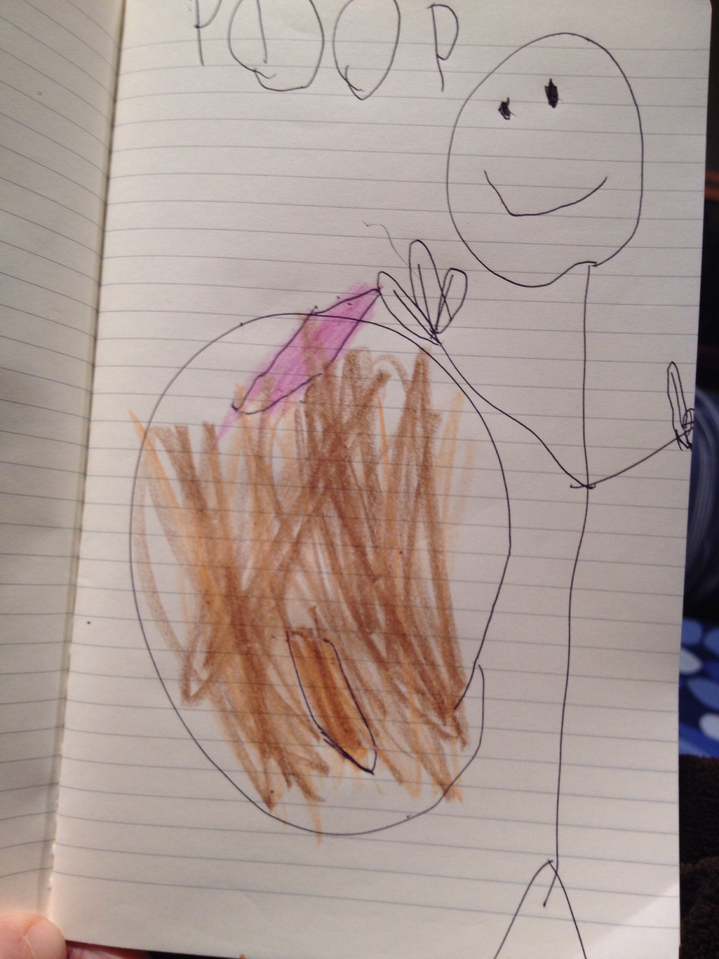 stick mommy, wearing gloves, digging for poop with a pink straw
