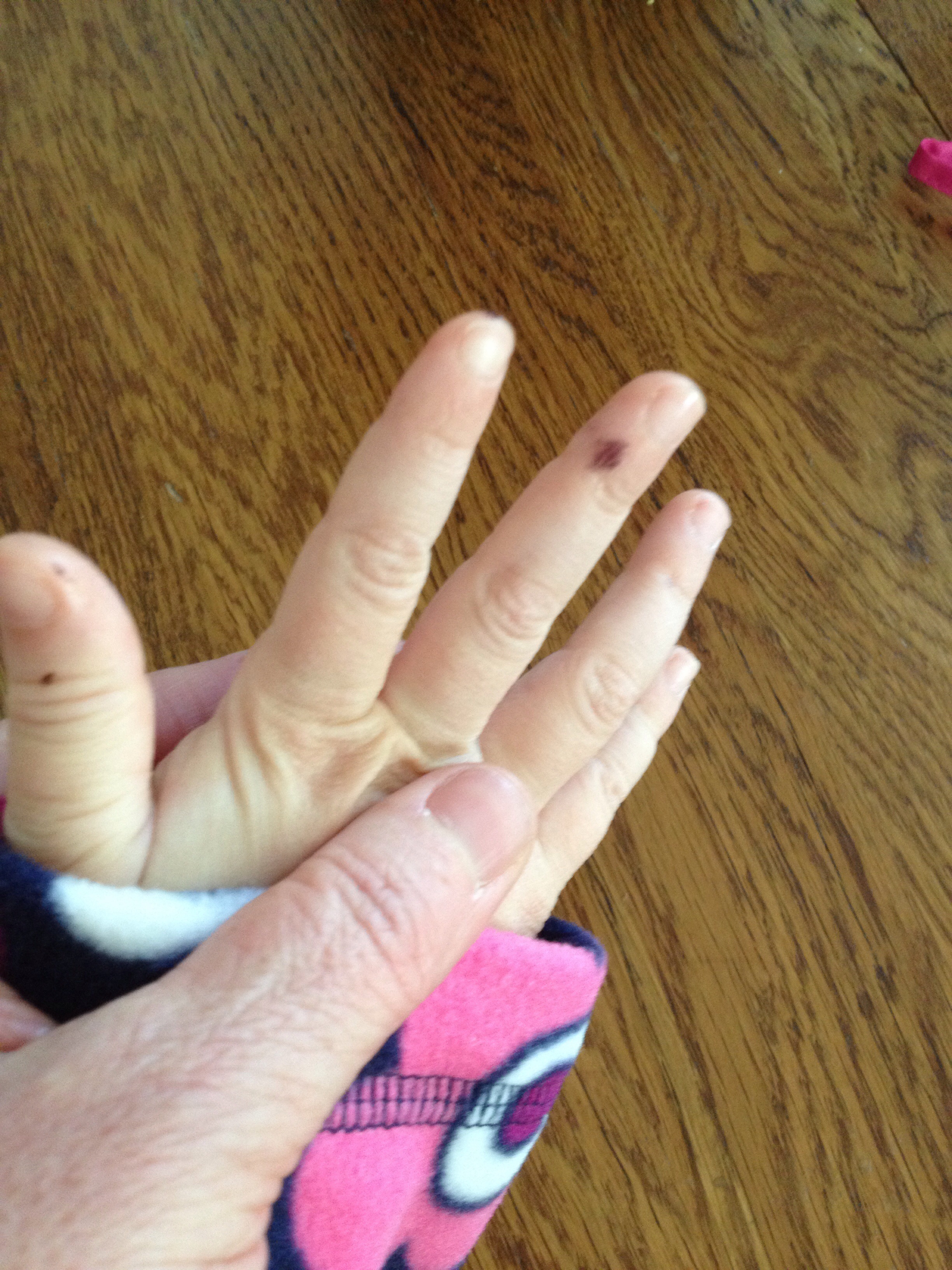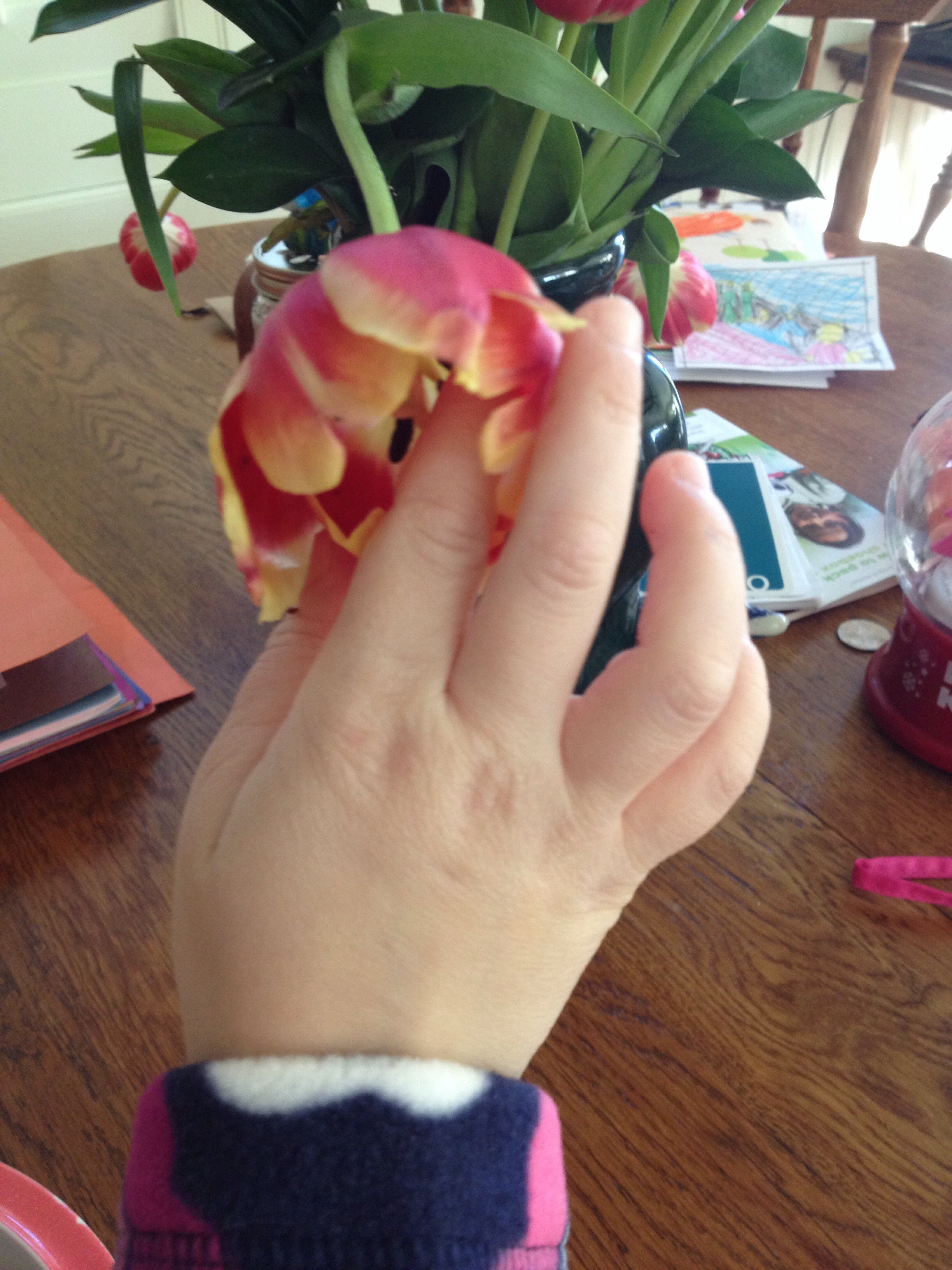 I was working and she was playing with her pile of toy animals. She brought an animal to me and asked
